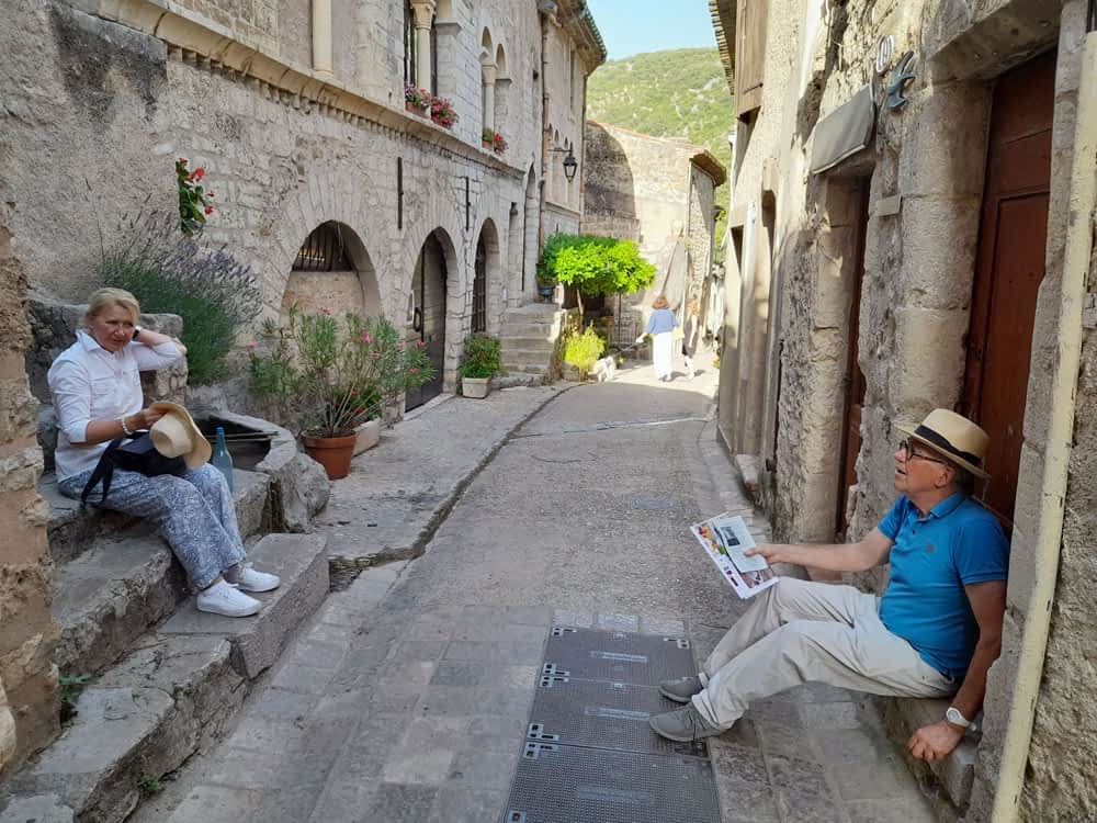 Gellone monastery Margaret and Robert needed a rest after climbing up towards the chateau on rough paths Tags: Abbey of Gellone, Camino de Santiago, chemins de Saint-Jacques, cloisters, Hérault, les Plus Beaux Villages de France, photo galleries, road to Compostela, UNESCO World Heritage site Read more articles Previous PostFirst look at Béziers Next PostNarbonne’s Halles and Restos You Might Also Like Les Halles d’Avignon 2022-06-07 Exploring Fatih: Kadirga 2022-05-13 Nîmes – Night walk on arrival 2022-05-13 Leave a Reply Cancel replyCommentEnter your name or username to comment Enter your email address to comment Enter your website URL (optional) Save my name, email, and website in this browser for the next time I comment. Yes, add me to your mailing list Δ This site uses Akismet to reduce spam. Learn how your comment data is processed. Brief visit to Saint-Guilhem-le-Désert