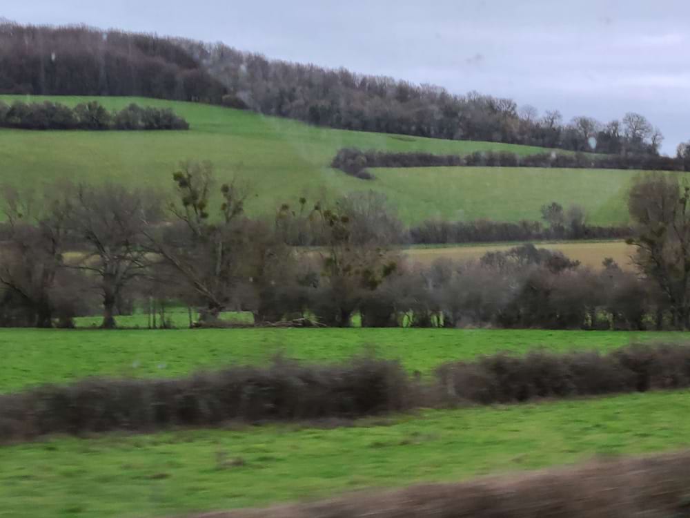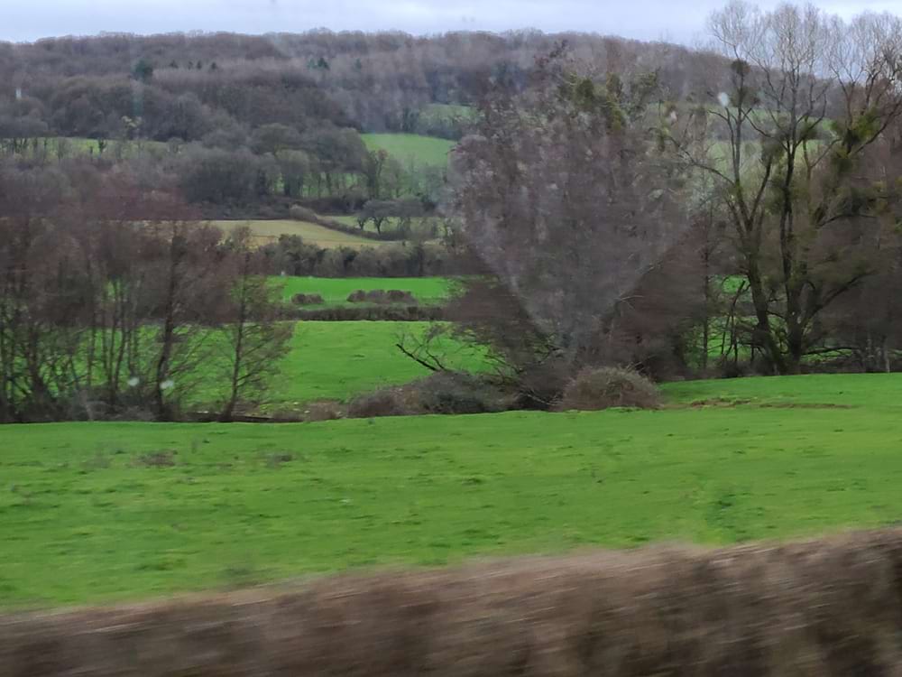 The countryside was startlingly green. It’s January, and yet the hillsides looked like advertisements of Ireland. For a while, the route followed the Yonne river, making for delightful scenery. Otherwise, there were rolling hills with all their windbreaks – being the only vegetation that seemed wintry. The towns we went through were a mix of drab industrial sections and fascinating medieval villages, with a few archeological sites signaled along the way. I’d loved to have managed to snap a photo of one town’s pair of directional signs reading “Eglise” and below that, “Foie Gras.” Just the essentials!?