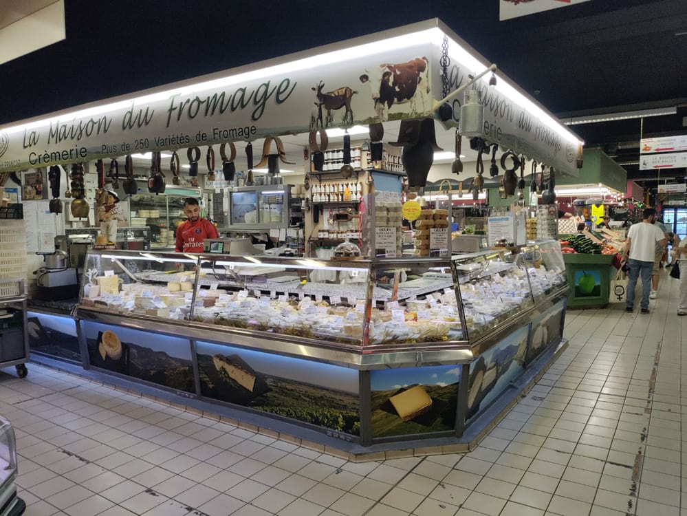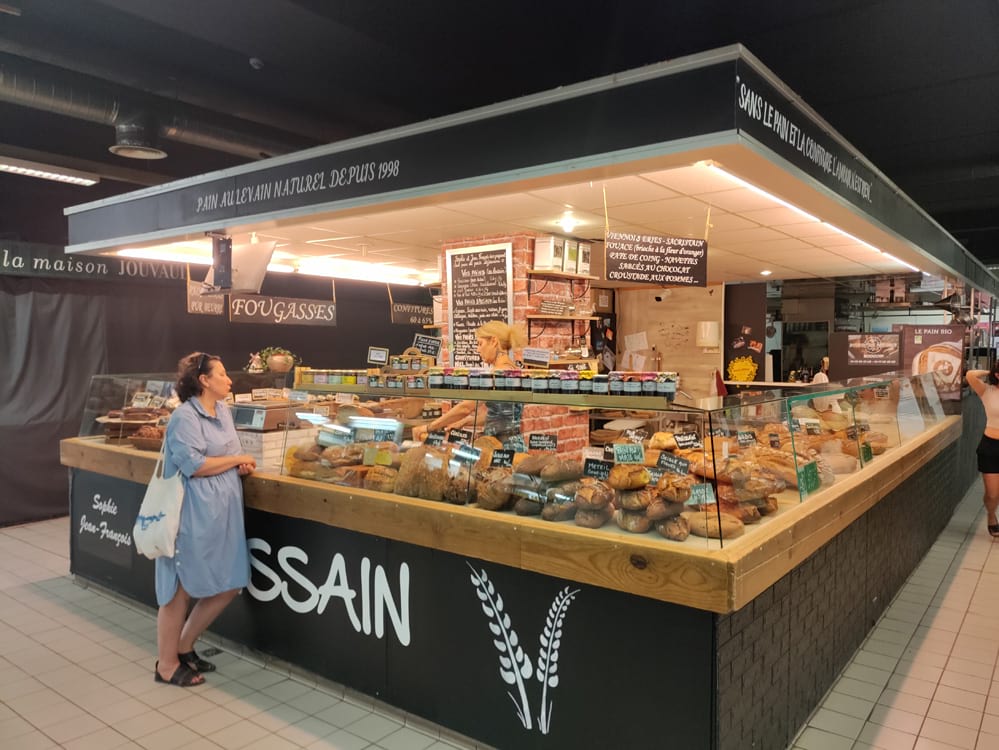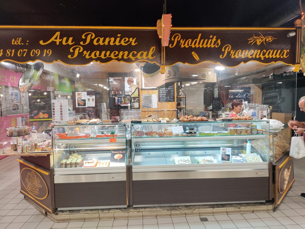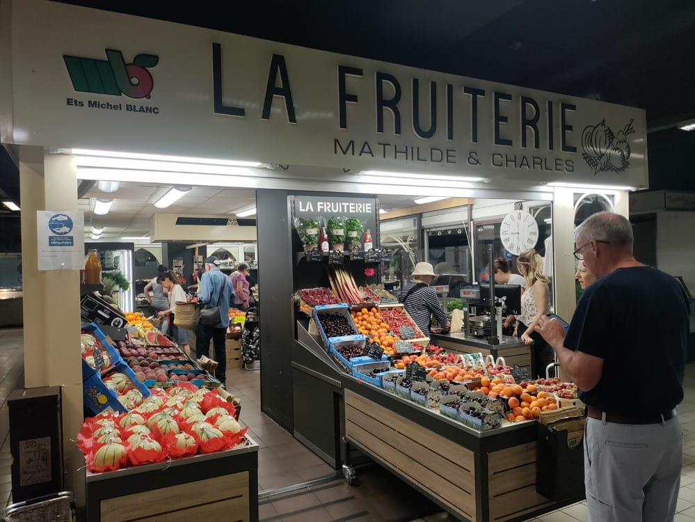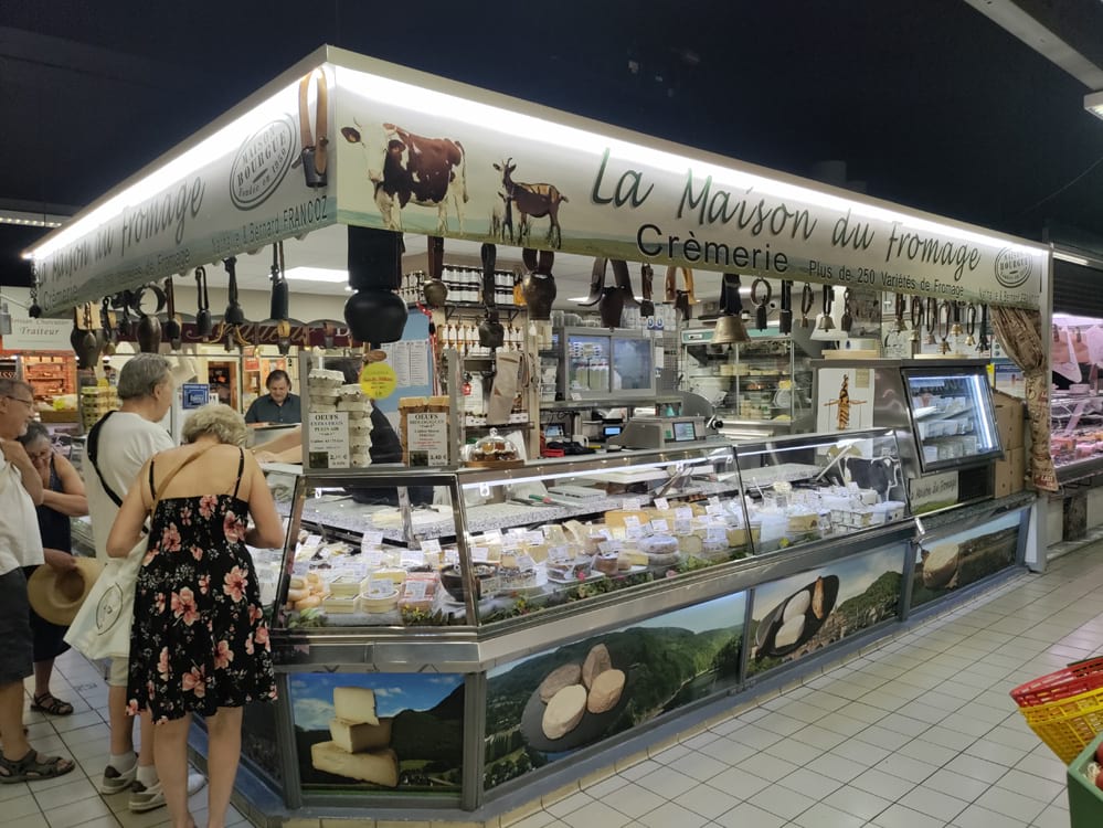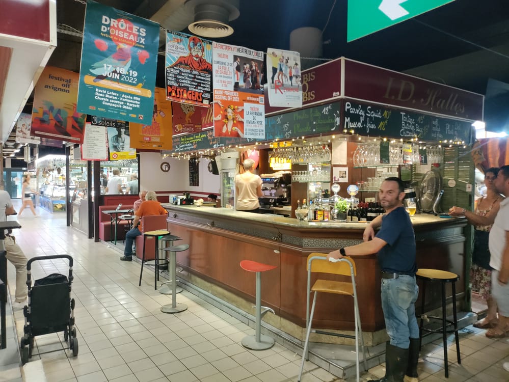 I’ve been staying near Les Halles for about ten days, and thought I’d share a little photo catalog of the vendors here. I rather prefer the Halles at Nîmes, but we’ve had very good fish, excellent bread, olives, cheeses, milk and yogurt, and slightly pricey but very fresh fruit and veg, so Avignon has been a happy experience.