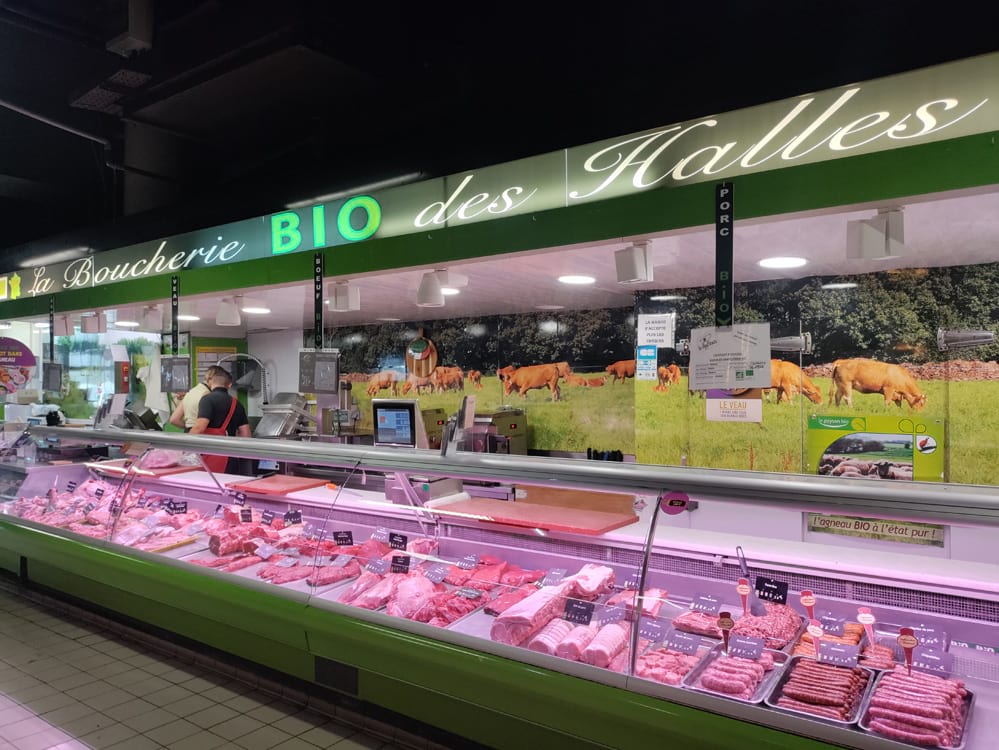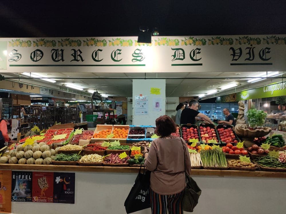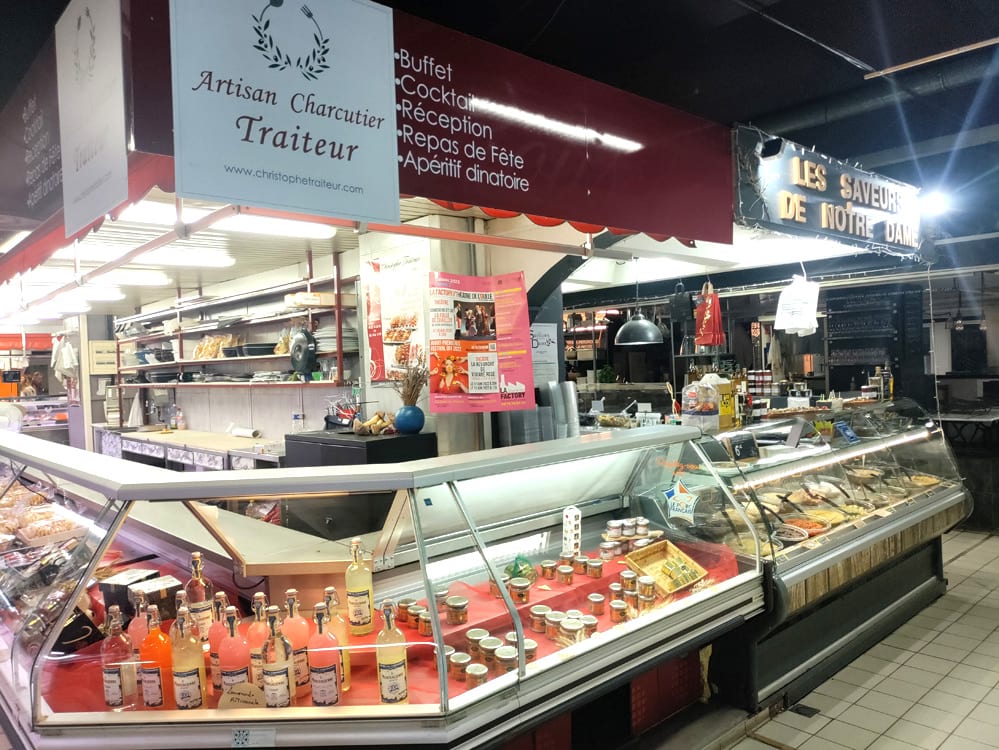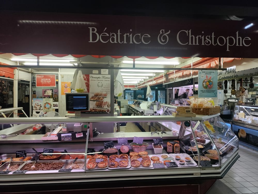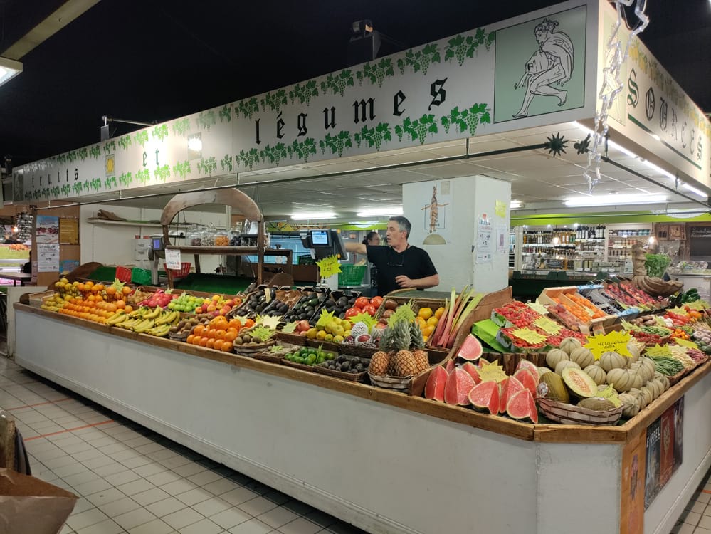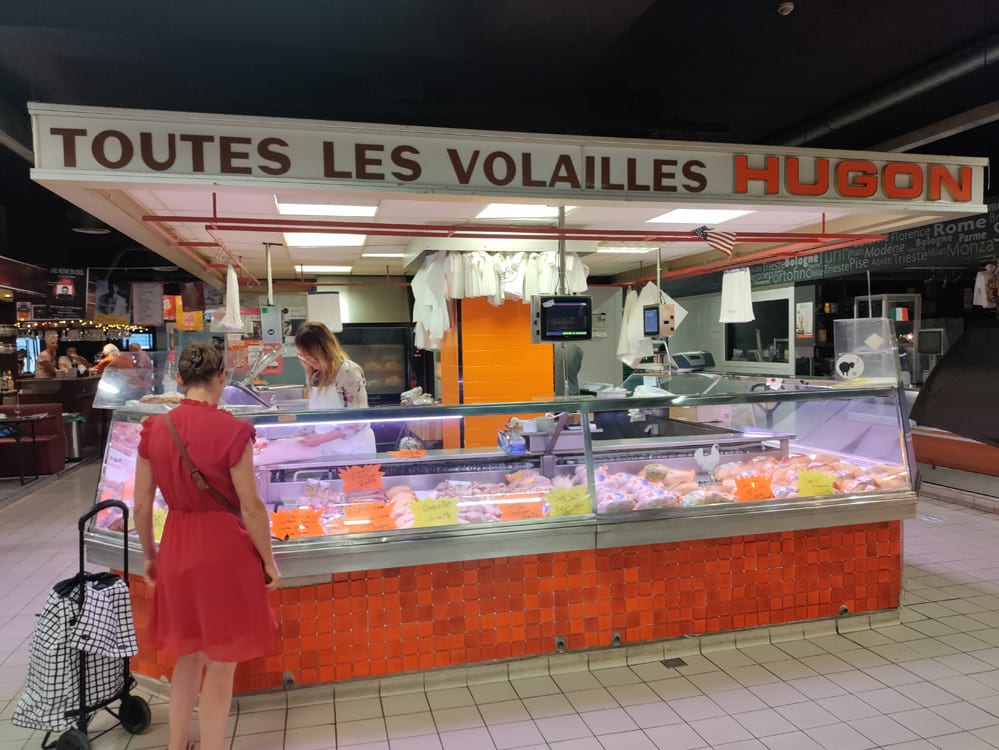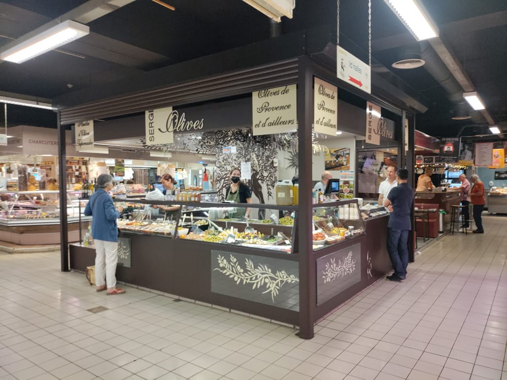 I’ve been staying near Les Halles for about ten days, and thought I’d share a little photo catalog of the vendors here. I rather prefer the Halles at Nîmes, but we’ve had very good fish, excellent bread, olives, cheeses, milk and yogurt, and slightly pricey but very fresh fruit and veg, so Avignon has been a happy experience.