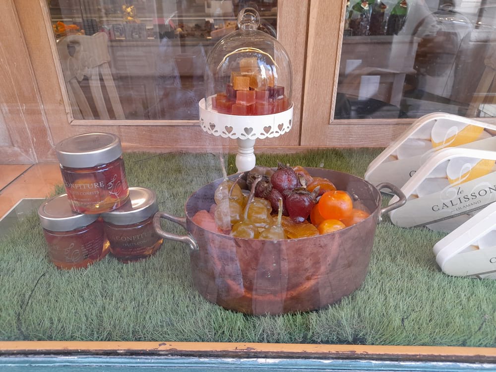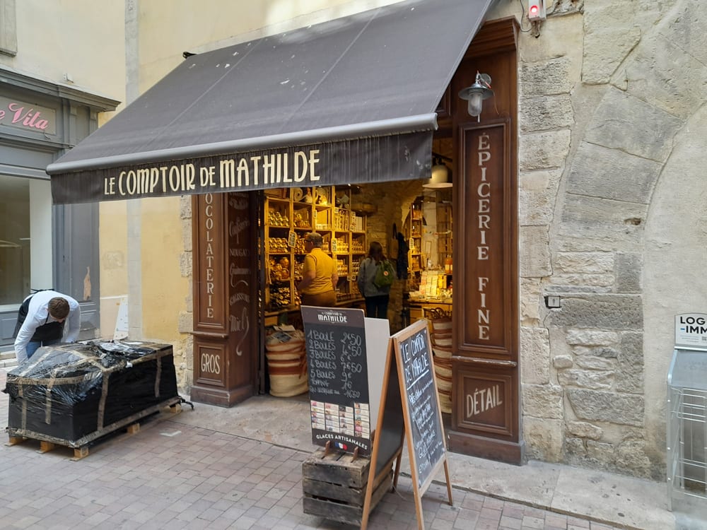 Friday morning, first day here, went in search of a bakery, the market, and just a look around the heart of town. Food shops are hardly the only shops, but you know they’re what I pay attention to. The usual retail chains are here, like L’Occitane en Provence, Yves Rocher, etc, and a few salons, including Jacques Dessange. But you can see you have a lot of gourmet goodies and organic fruits and veg outside of the famed Halles (shown in another post/gallery).